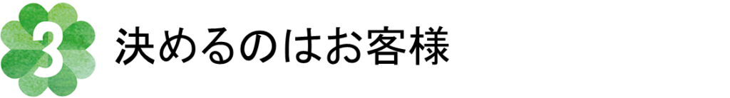 決して無理強いせず、お客様にとっての「運命の家」に出会う時まで一緒に旅を続ける。